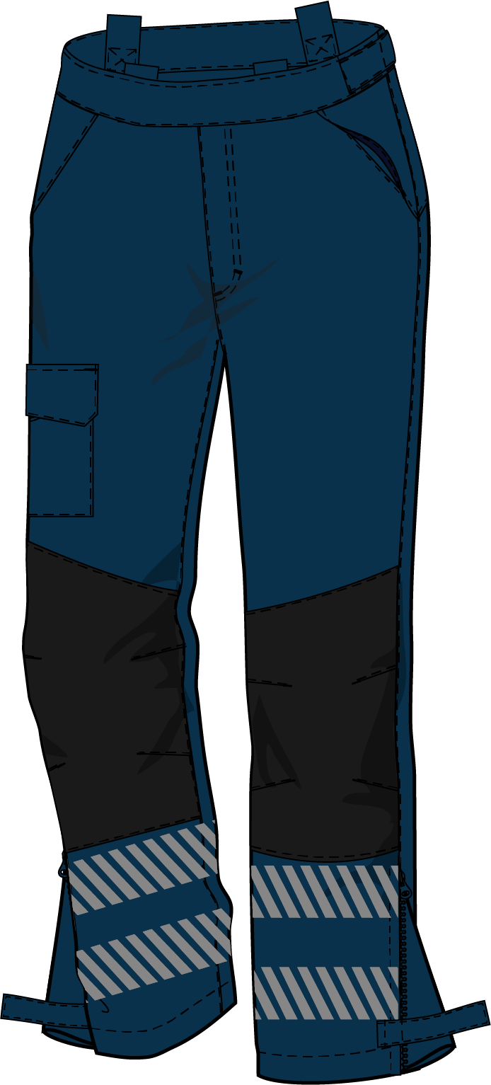 Un pantalon de pluie à la fois résistante et très confortable : Le tissu laminé L'Safe – bleu marine pour éviter les salissures – offre des performances de solidité, de respirabilité et de protection intempéries incomparables, renforcées par du Cordura sur les zones d’usures.